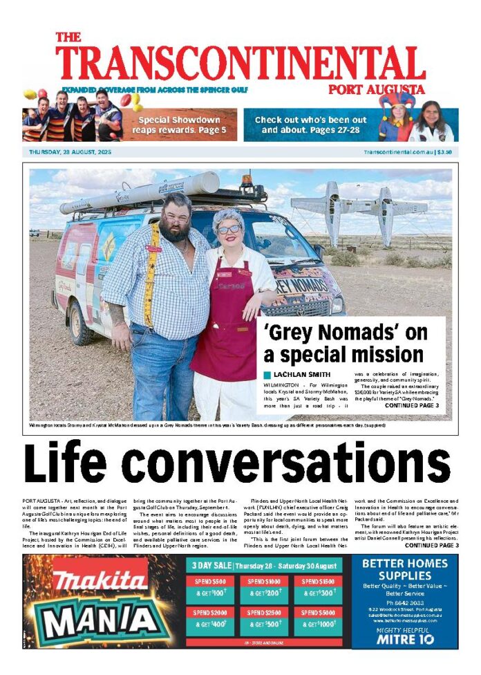 The Transcontinental – 28th August 2025 Subscribe or Login to see the rest of the content. Username Password * Remember Me Forgot Password News Club Umee Christmas fun 09/12/2025 PORT AUGUSTA - Umeewarra Media wrapped up a year of fun and learning with its Club Umee Christmas Party on December 9, bringing... Central hold onto fourth 09/12/2025 REGION - West Augusta has claimed its first win of the year by 31 runs over Roopena in its Port Augusta A grade cricket... Quorn night cricket debut 09/12/2025 QUORN - The Quorn community was treated to an action-packed four days of cricket last week, with the club hosting night cricket for the...