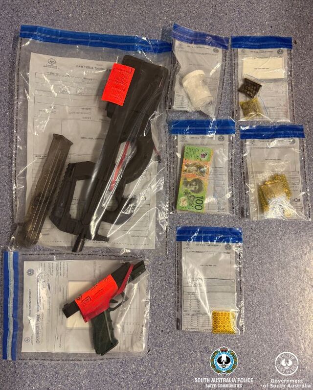 During the search of a Risdon Park house officers located two gel blasters, a trafficable amount of drugs including methamphetamine, cannabis and drug paraphernalia (supplied)
