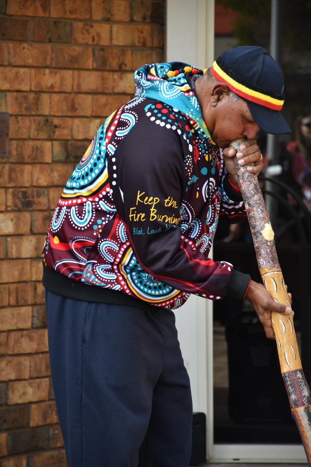 Port Pirie Regional Council held a flag raising ceremony to mark the start of NAIDOC Week 2025, pictured musician Chris Dodd who played during the ceremony (Neralie Bailey: 488825_04)