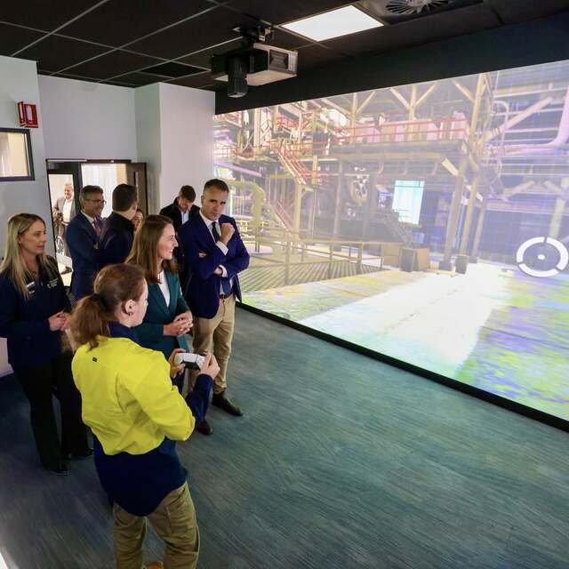 Anna Wiley of BHP and South Australian Premier Peter Malinauskas with some of the students of the Port Augusta Technical College at the opening of the new facility this week. (supplied)