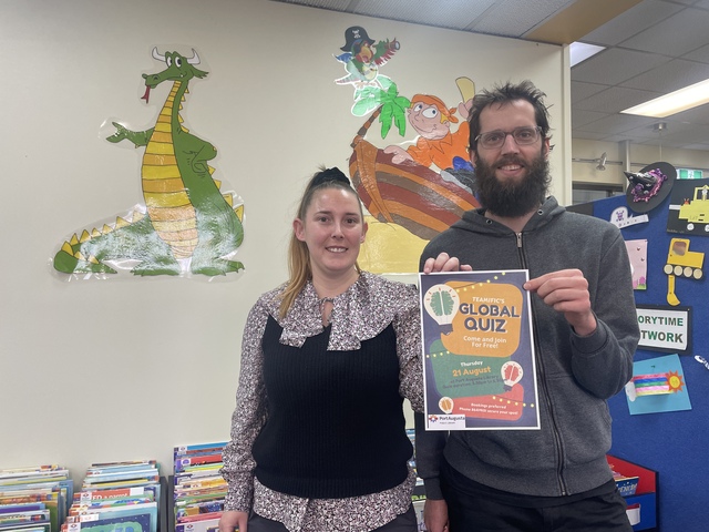 Acting Port Augusta community librarian Mikaela Rose and staff member Rob Lewis - The Port Augusta Public Library team are inviting locals to compete against other libraries through their local team in the Teamific’s Global Quiz, with next session to be held on August 21. (Lachlan Smith)