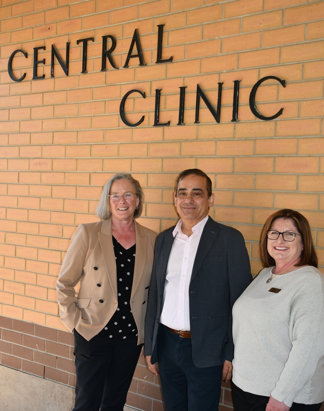 Senator Karen Grogan with Dr Daryoush Solgi and Central Clinic Practice Manager Linda Oliphant on site for the announcement of the introduction of a full bulk billing service for Port Pirie (Neralie Bailey: 496140_01)