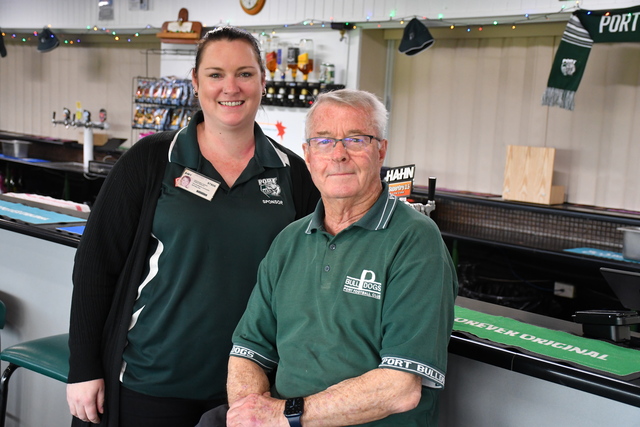 Port Football and Community Sporting Club manager Amy with Kevin Ganley, a finalist for the Clubs SA Clubs and Community Awards 2025 Volunteer of the Year (Neralie Bailey: 499564_01)
