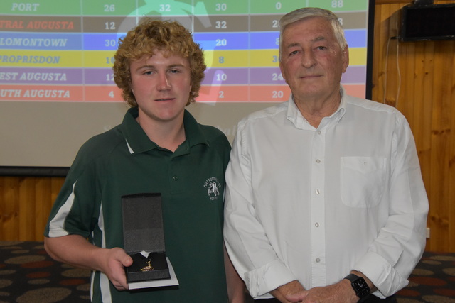 U18 Bishop Medal Winner Port Jaxon Richards with Nick Heron. (Sue Dalla Santa).