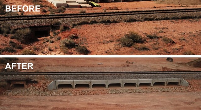 Works have recently been completed along the East West railway line, with images captured before and after the culvert upgrades were carried out. (supplied)