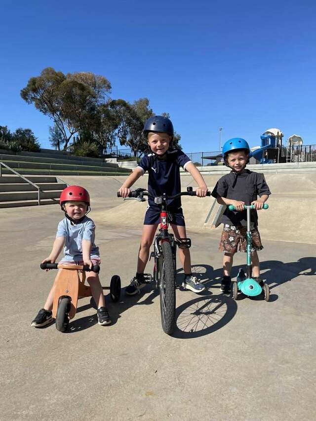 Freddy, Flynn and Fletcher Freeth at the Broughton Skate Park. (Supplied)
