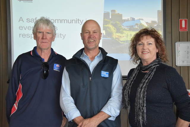 Chief executive of Crimestoppers Nigel Smart (centre) with Mick Kerin and Barbara Hunt - Mr Smart spoke at a community forum recently, outlining the role Crimestoppers play and how people can report suspicious behaviour. (Sue Dalla Santa)