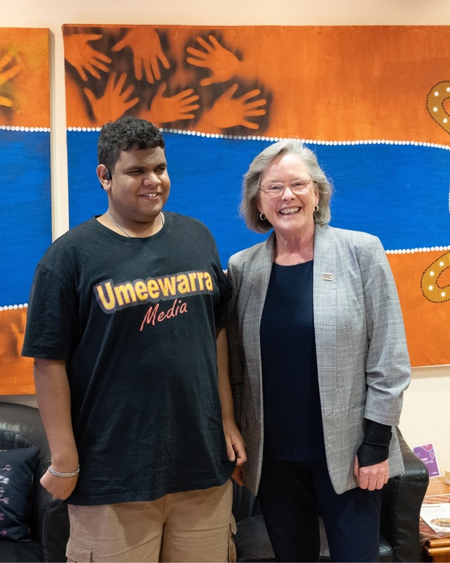 Tyson Fielding of Umeewarra Media with Senator Karen Grogan - Umeewarra Media received government funding recently for its Umeewarra Downtown event in March 2026. (supplied)