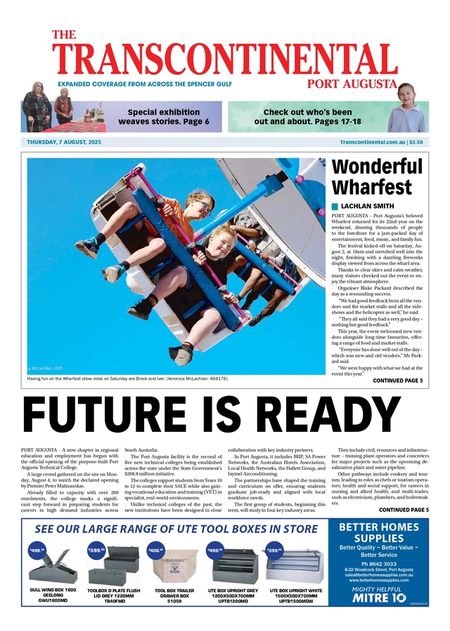 Year that was in Augusta – August 29/12/2025 FacebookTwitterEmail Purchase this photo from Pic Store: 525528 AUGUST 07/08/2025: A new chapter in regional education and employment begun with the official opening of the purpose-built Port Augusta […] Subscribe or Login to see the rest of the content. Username Password * Remember Me Forgot Password